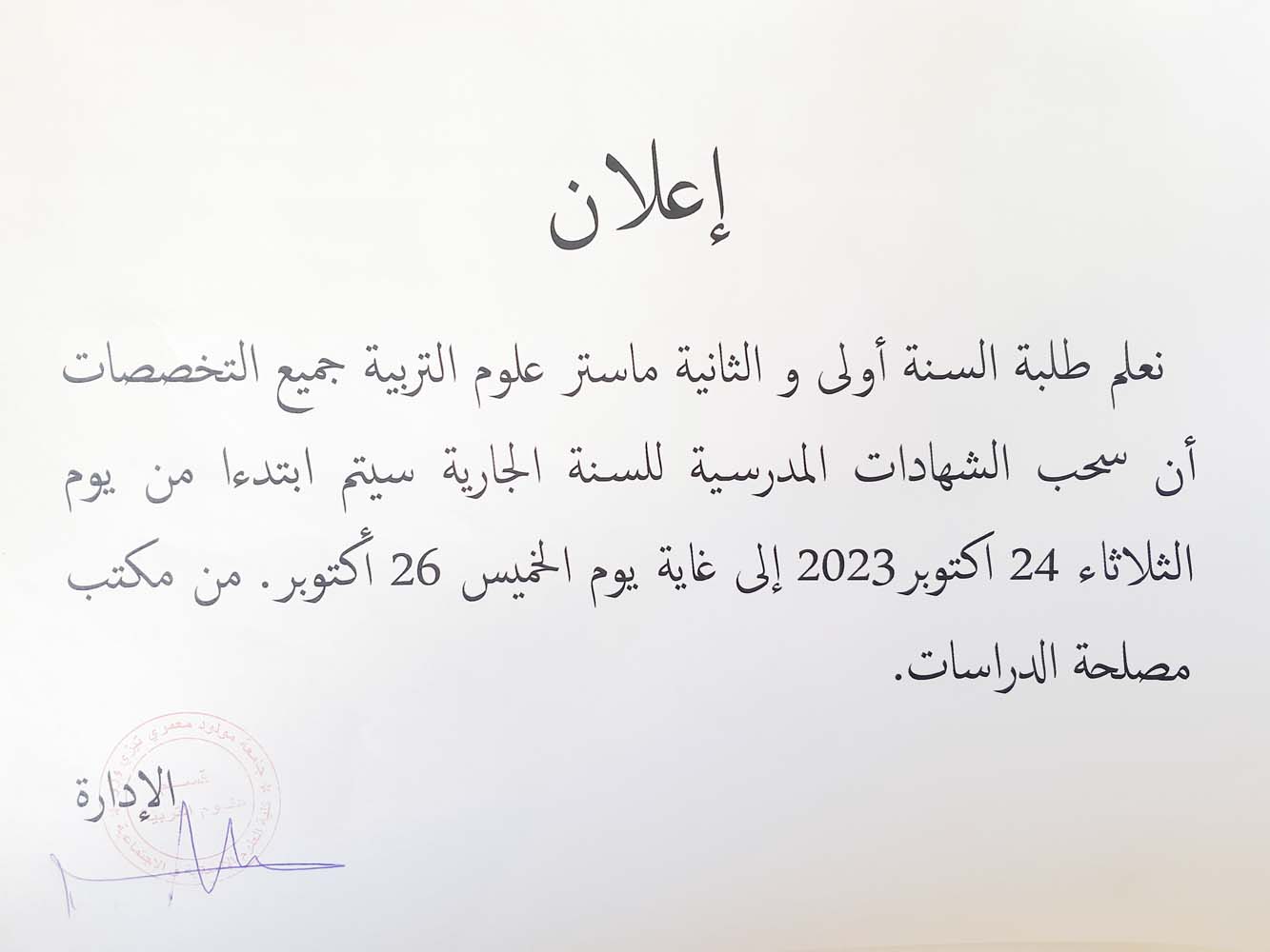 إعلان لطلبة السنة الاولى ليسانس