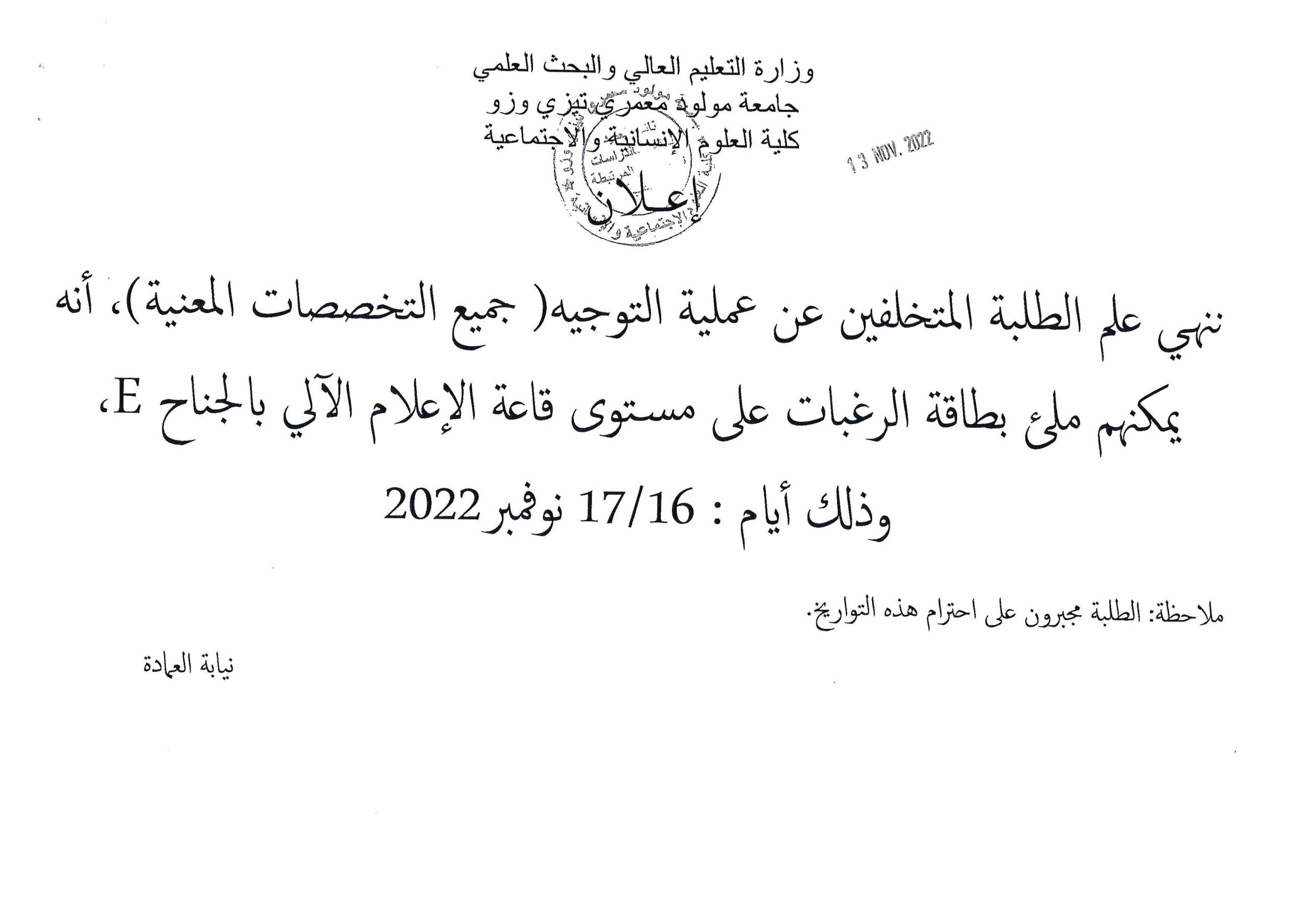 إعلان لطلبة الليسانس و الماستر قسم العلوم الإجتماعية