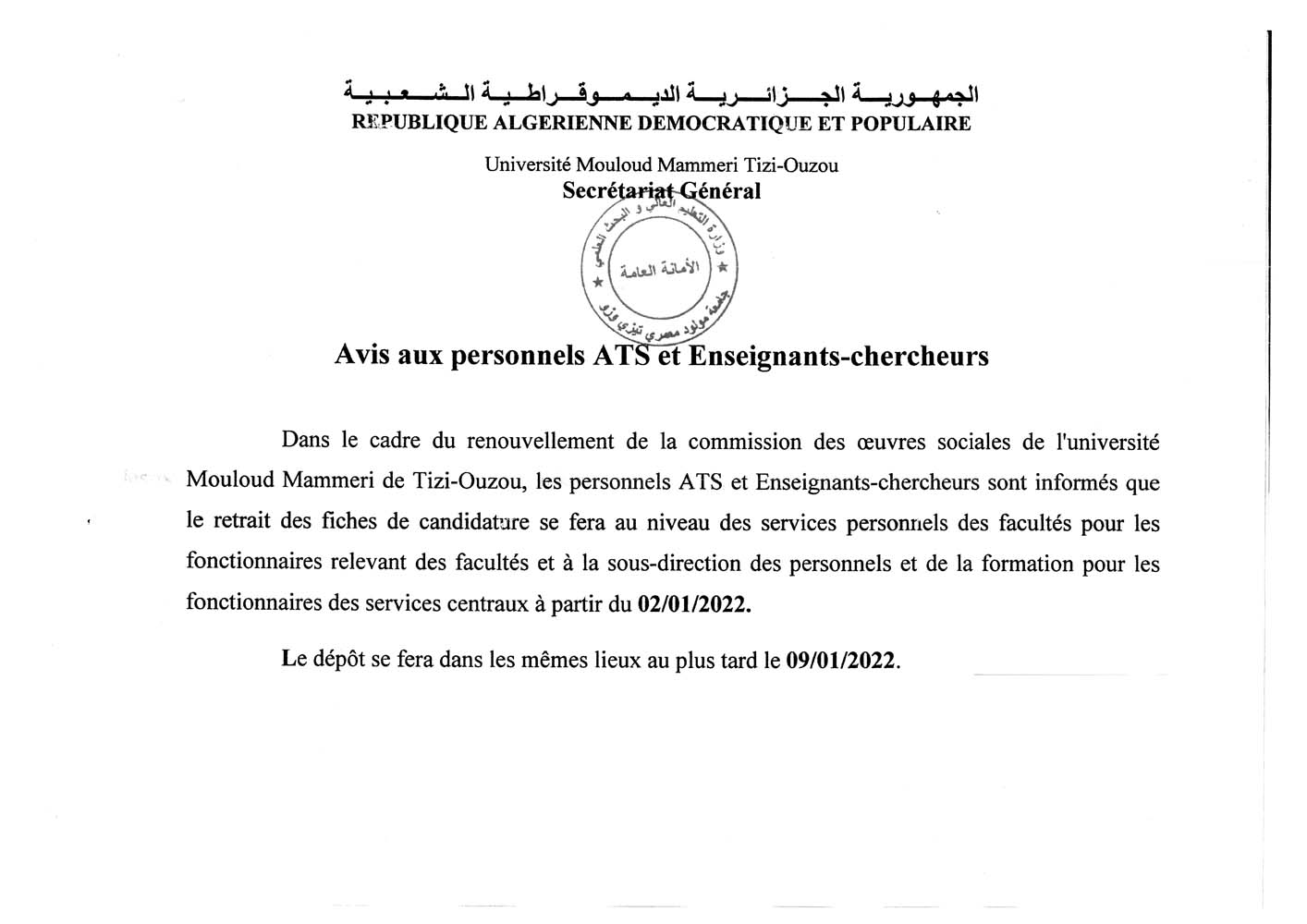 إعلان لطلبة الليسانس و الماستر قسم العلوم الإجتماعية