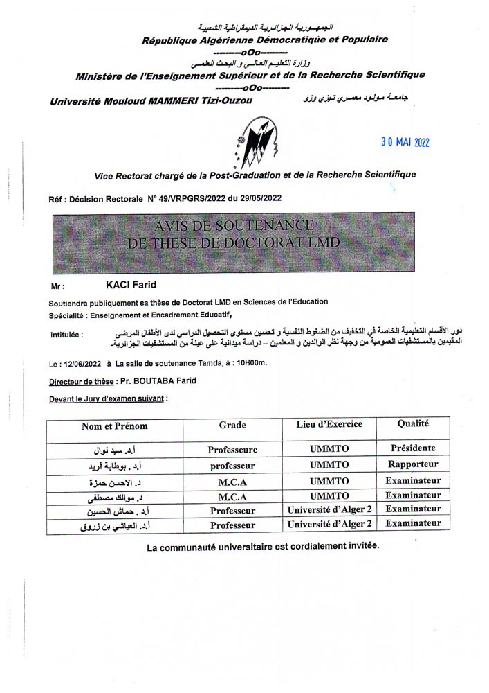 إعلان لطلبة الليسانس و الماستر قسم العلوم الإجتماعية
