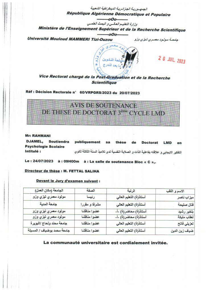 Avis de soutenance de thèse de doctorat