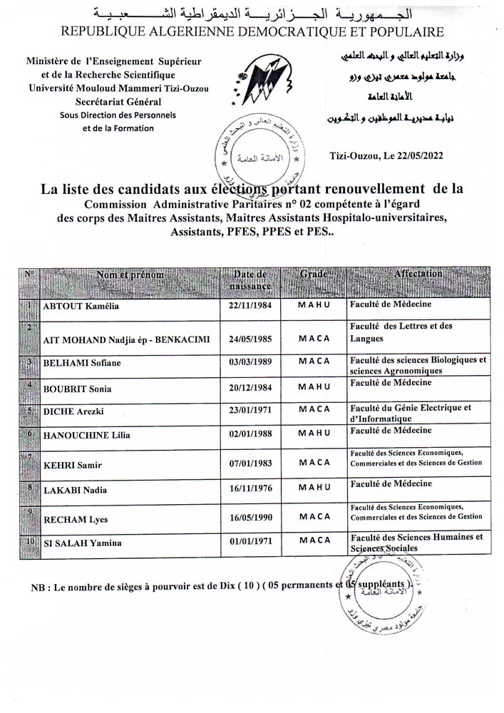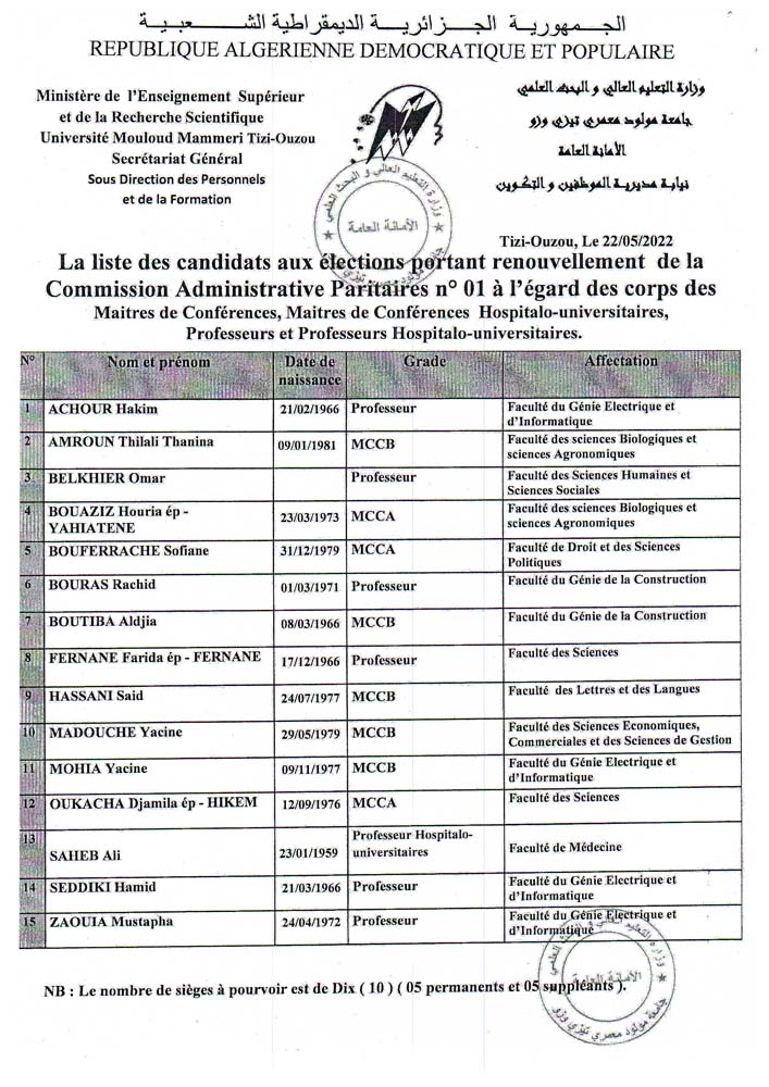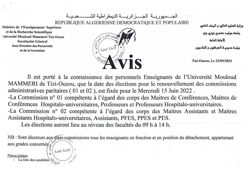 Avis – Renouvellement des commissions administratives paritaires