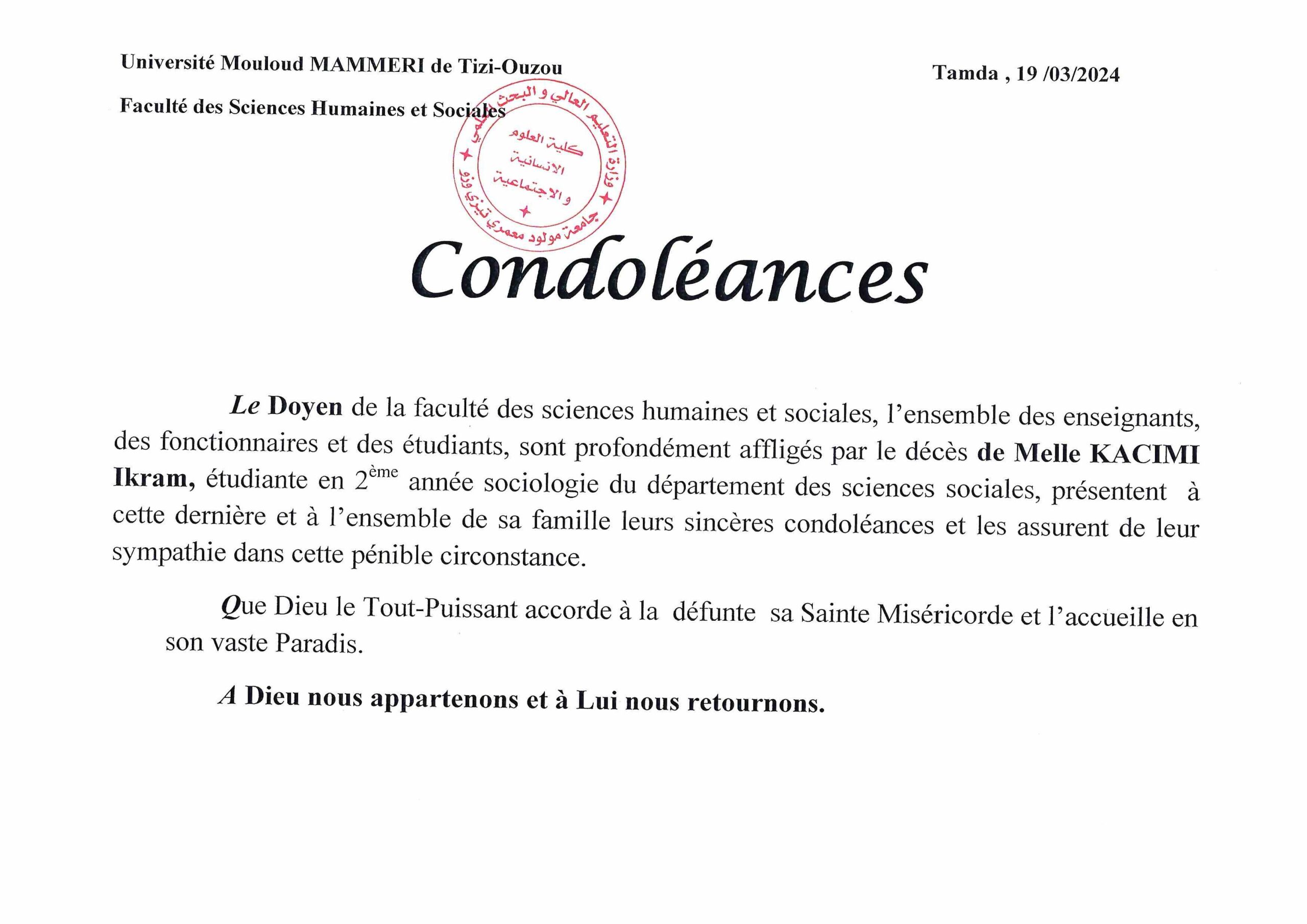 إعلان لطلبة الليسانس و الماستر قسم العلوم الإجتماعية