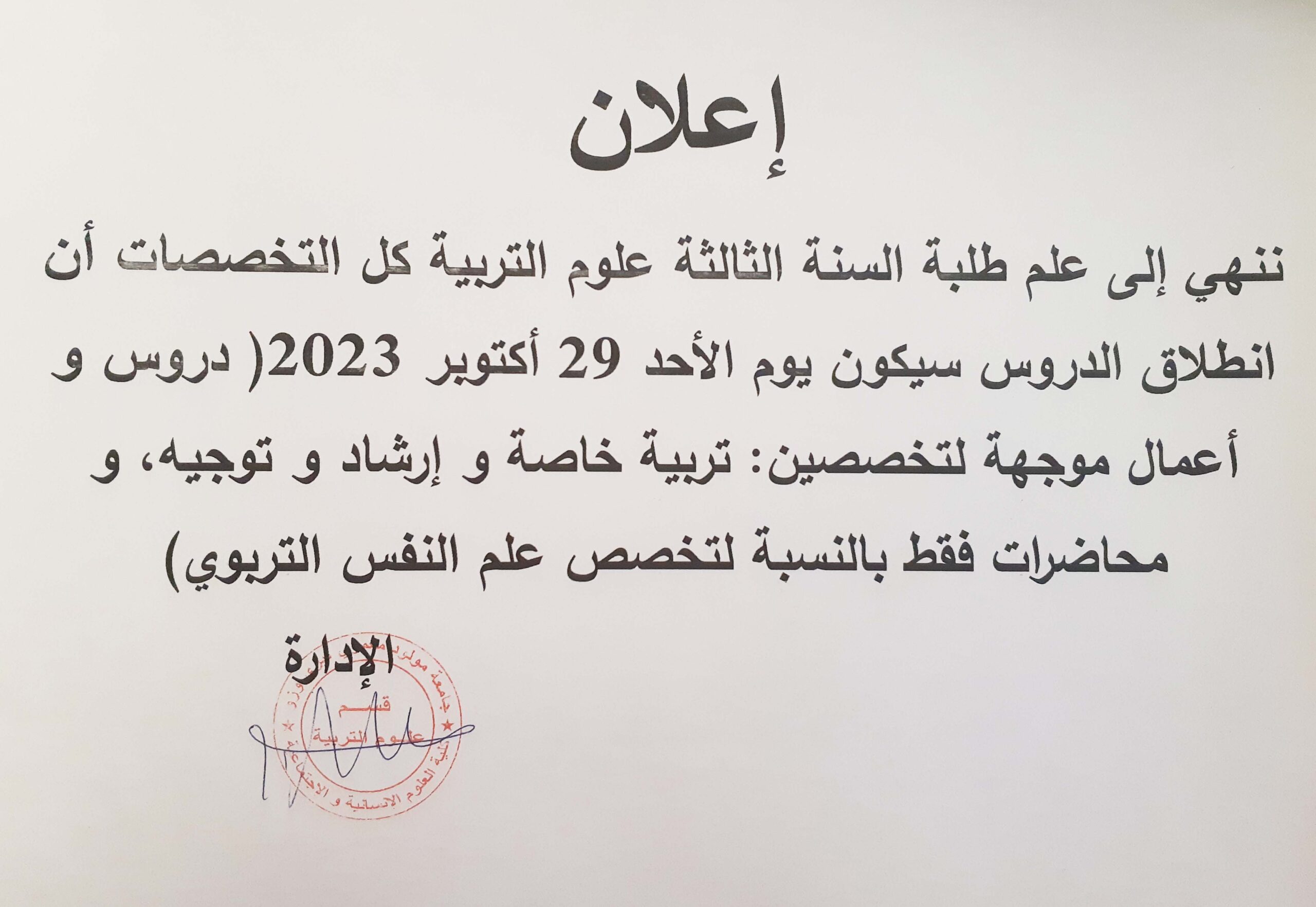 إعلان لطلبة السنة الاولى ليسانس