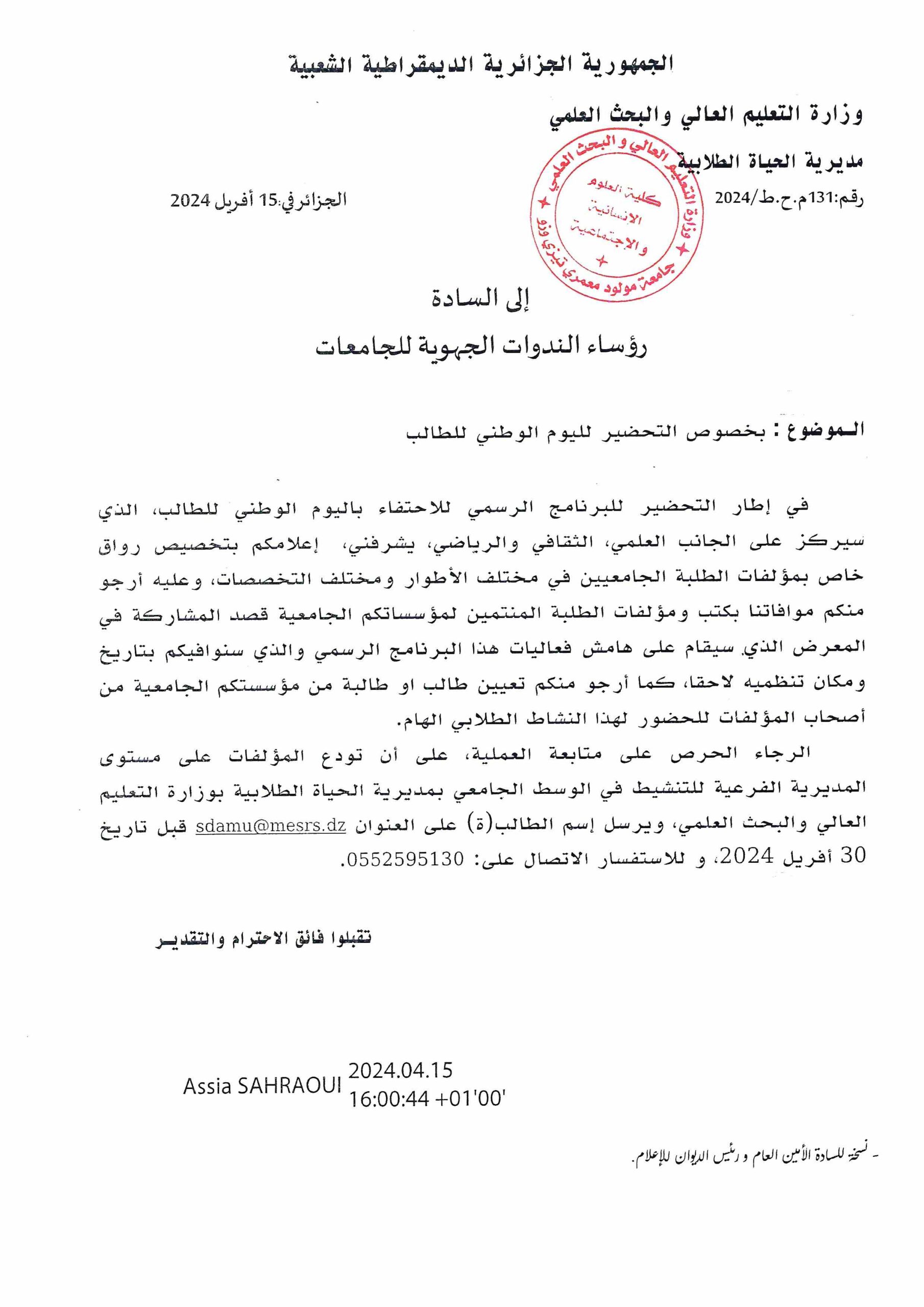إعلان لطلبة الليسانس و الماستر قسم العلوم الإجتماعية