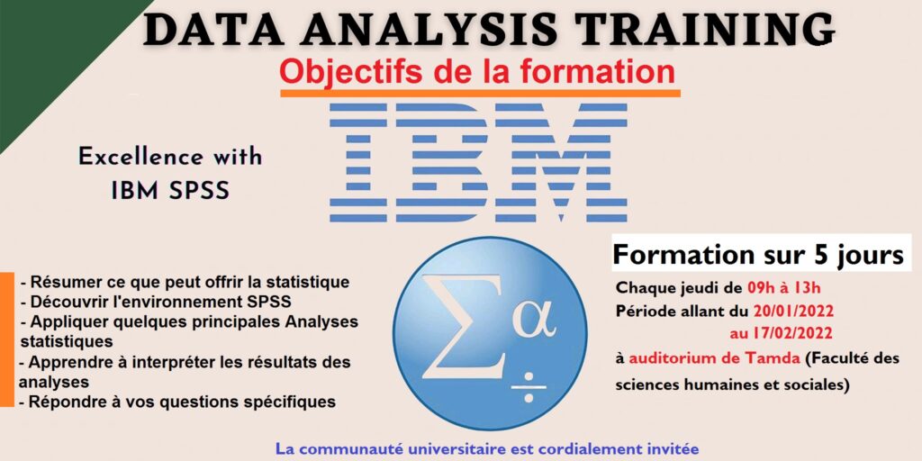 Offre de formation SPSS de 20/01 au 17/02/2022 chaque Jeudi de 9h à 13h