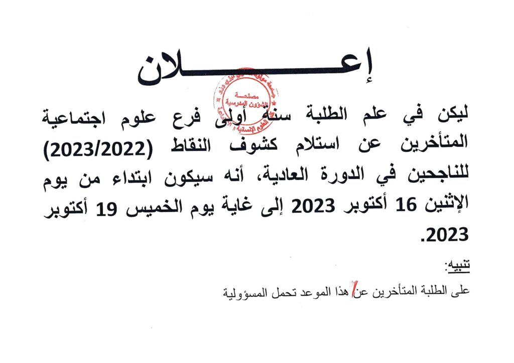 إعلان لطلبة الليسانس و الماستر قسم العلوم الإجتماعية