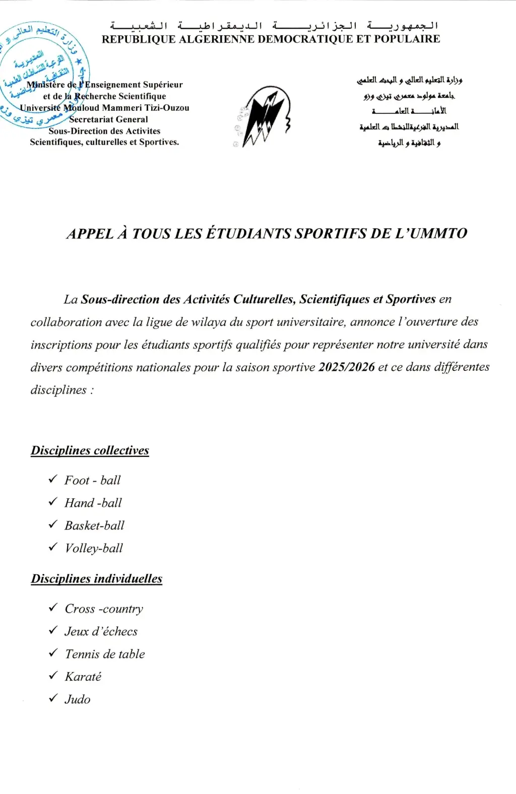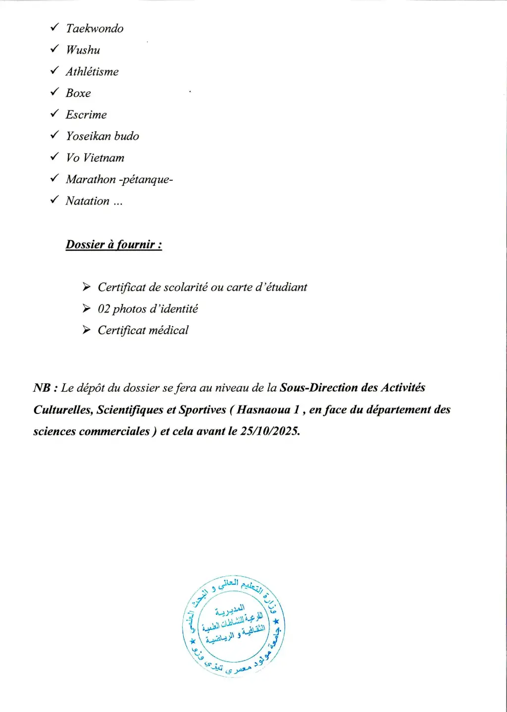 12 Oct 2025 | Activités scientifiques, culturelles et sportives, Etudiants