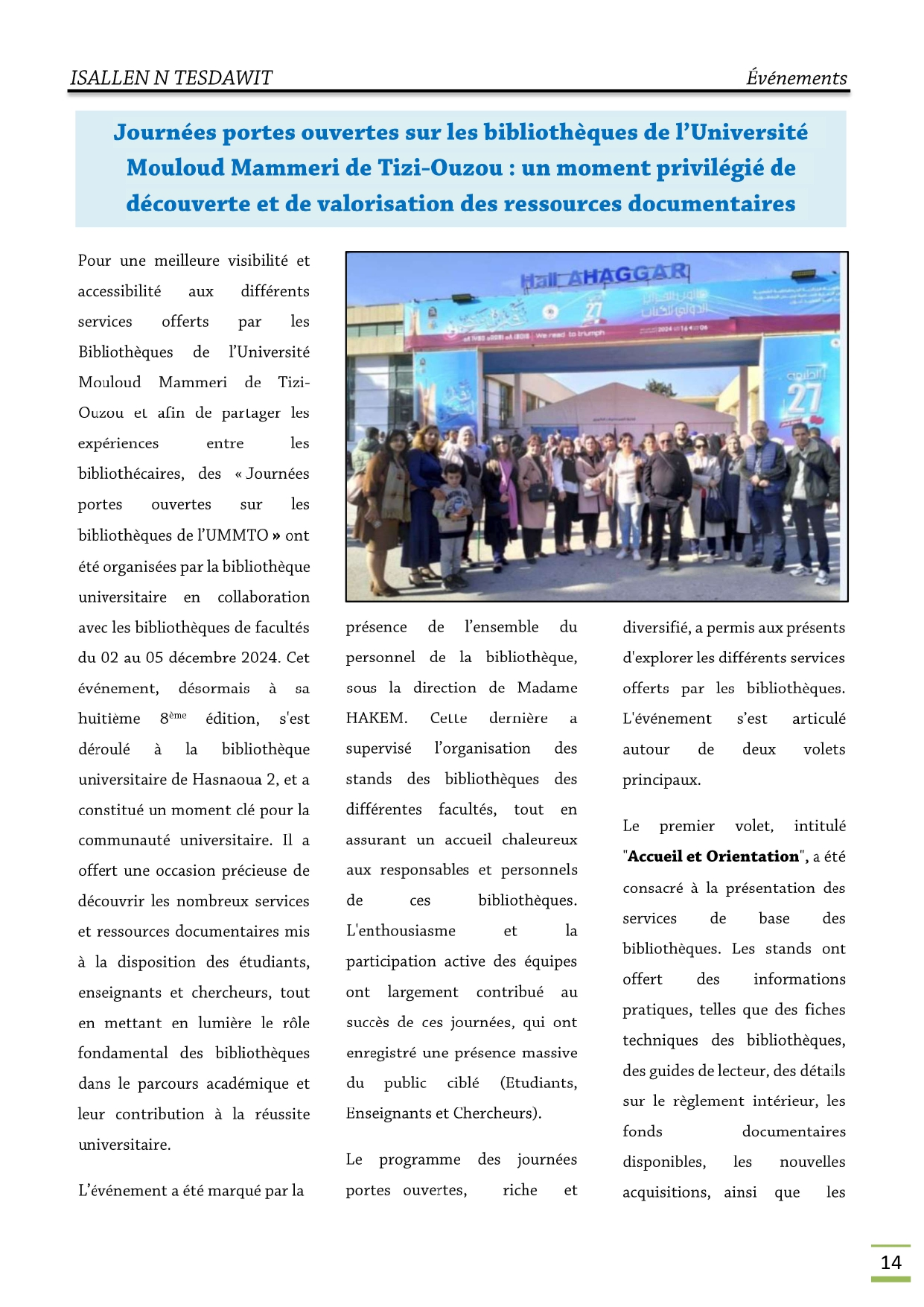 Journées portes ouvertes sur les bibliothèques de l’UMMTO Dec 2024