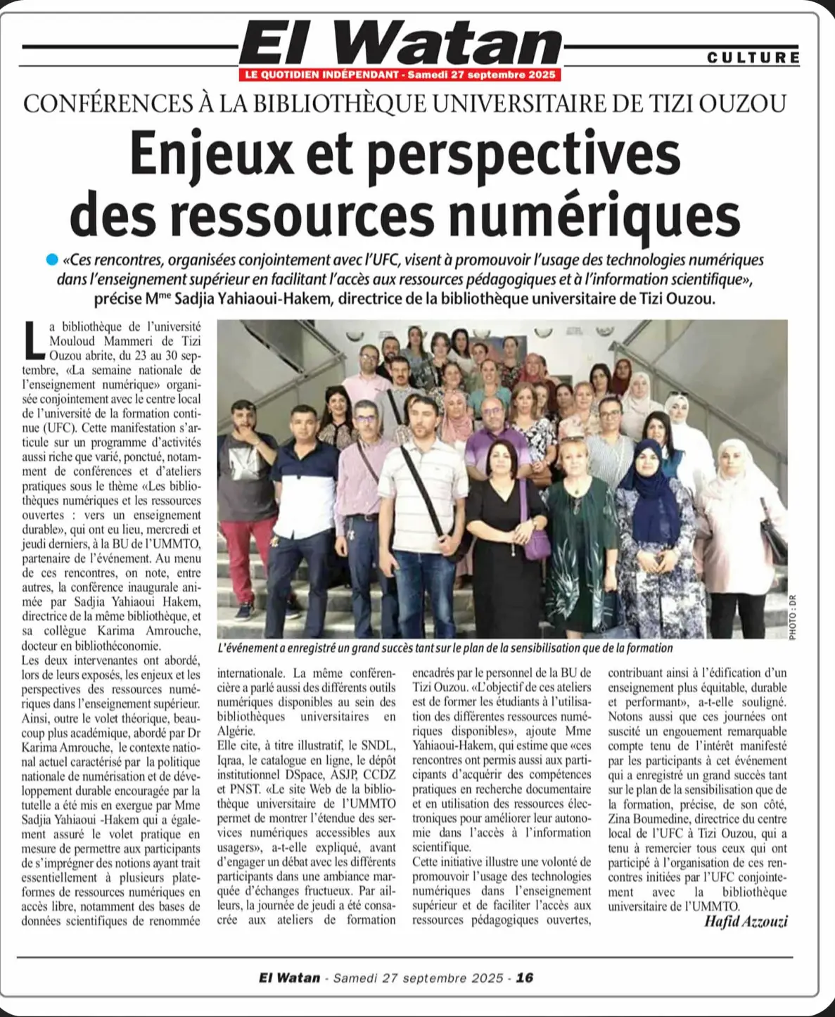 Le journal El Watan consacre un article sur la conférence organisée à la bibliothèque centrale
