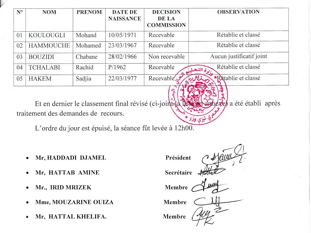 Liste finale portant classement « révisé » du personnel ATS postulant aux programme des 170 logements LPA et le Pv de la réunion extraordinaire de la commission de recours des logements LPA-ATS de l’UMMTO établi suite au traitement des dossiers par la commission de la Wilaya dont les résultats sont portés sur la correspondance n° 773/DL/295/SPIAE/2026 du 15/04/2026 émanant de la direction du logement de la wilaya.