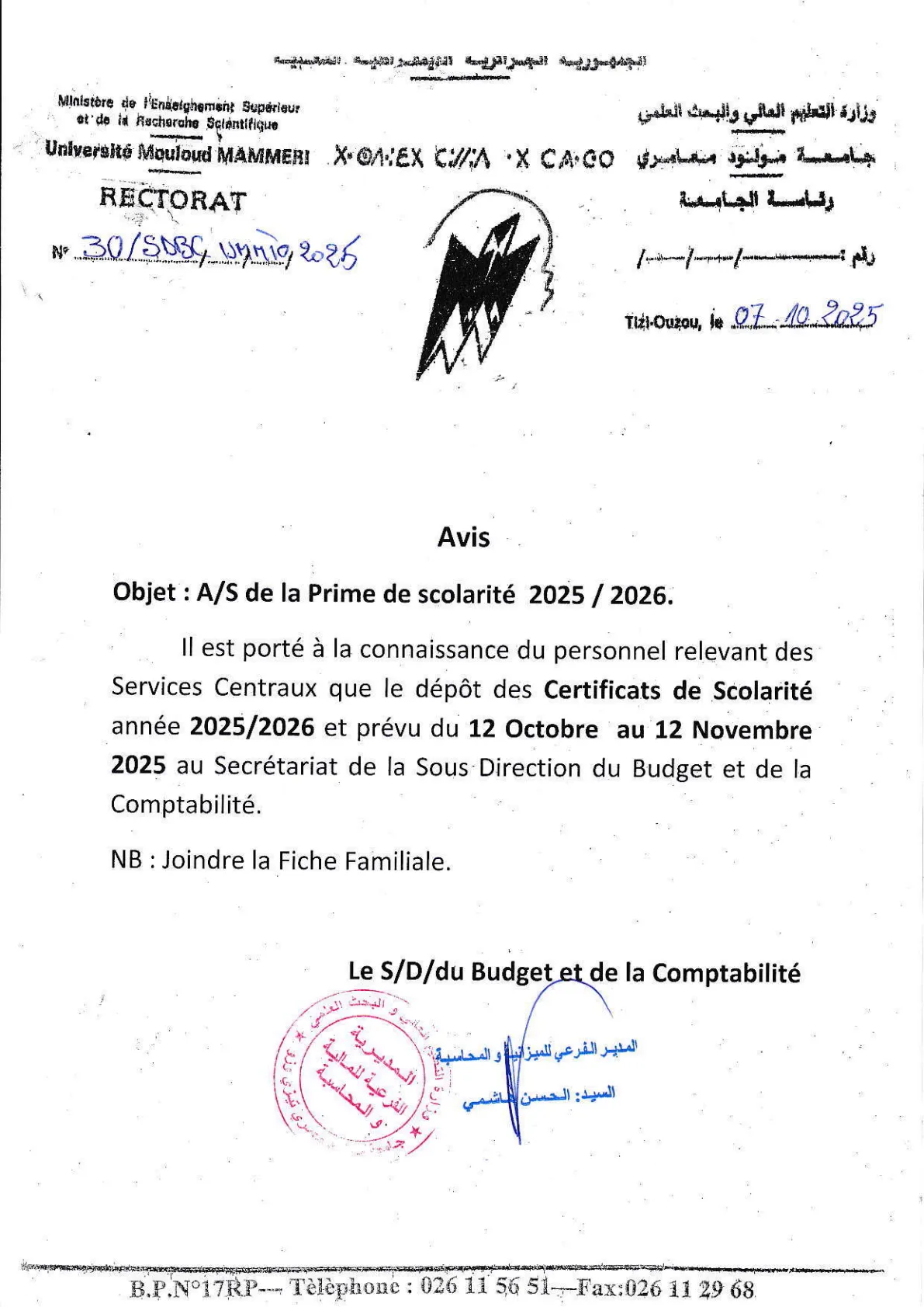 Avis de Consultation Numéro 17/SMM/FDSP/UMMTO/2025 Dans le cadre du budget de fonctionnement 2025, La Faculté de Droit et des Sciences Politiques de l’Université Mouloud MAMMERI...