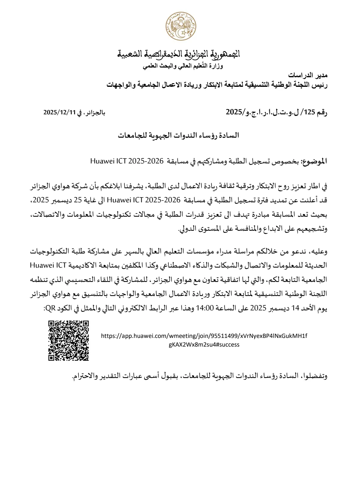 Prolongation du délai d’inscription à Huawei ICT Competition 2025-2026
