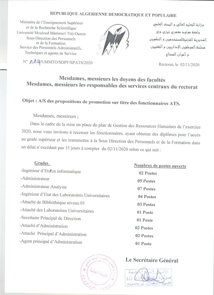 Dans le cadre de l’exécution du plan de formation de l’université au titre de l’exercice 2025, des formations de perfectionnement sous forme de séminaires de 05 jours, seront...