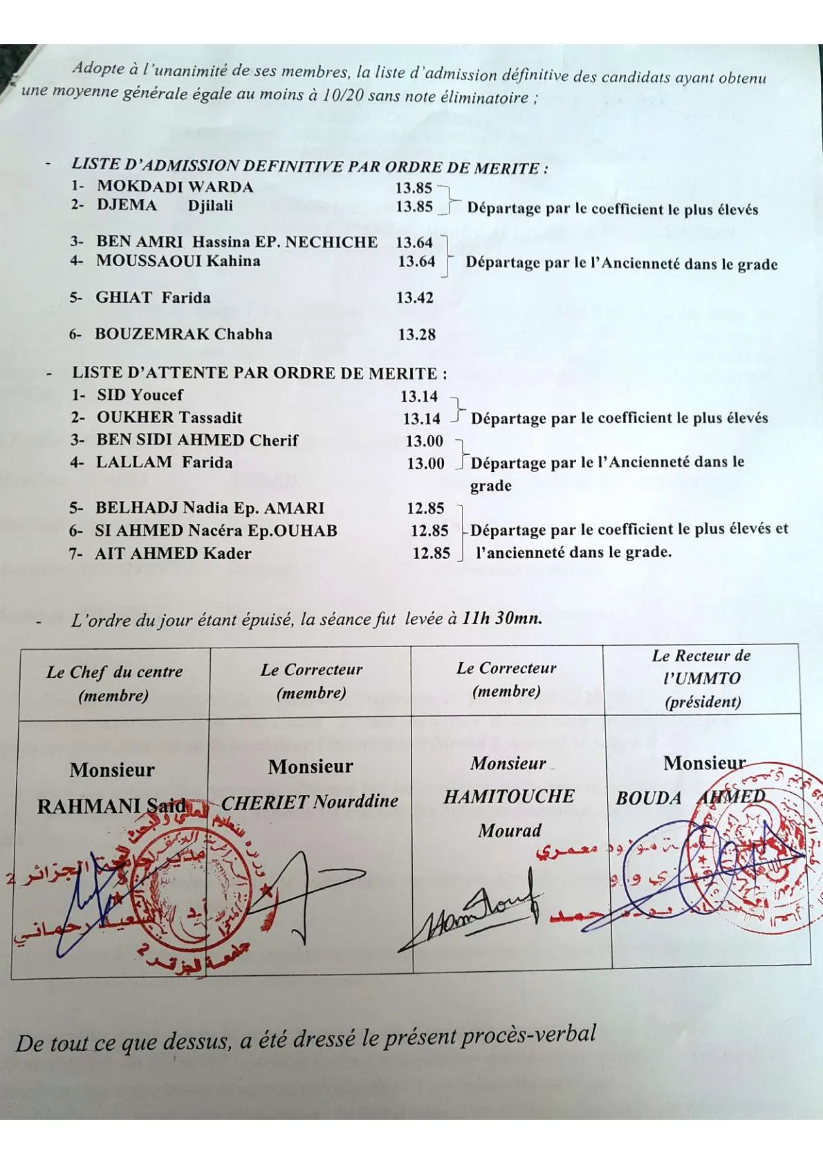 PV d’admission définitif à l’examen professionnel pour l’accès au grade Attaché de Bibliothèque universitaire de niveau 2