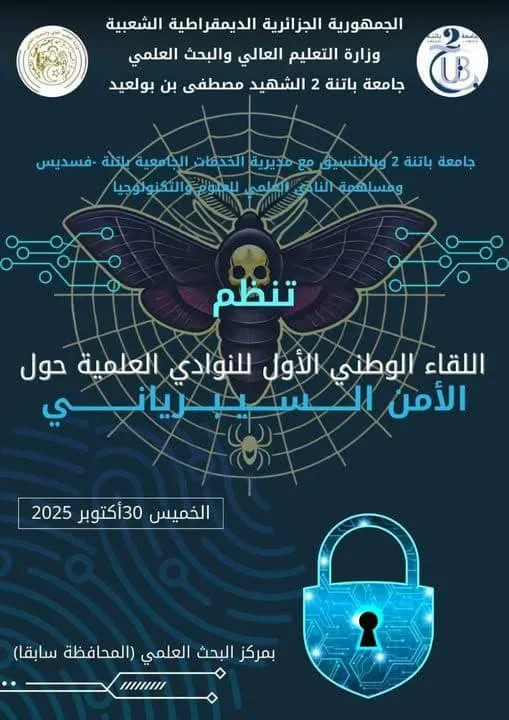» Retour en images sur la participation de l’Université Mouloud MAMMERI de Tizi-Ouzou à la rencontre nationale des clubs scientifiques sur la « CYBERSÉCURITÉ« qui s’est déroulée à l’université de Batna 2 du 29 au 31 Octobre 2025 à travers des conférences – débats et des workshops « .