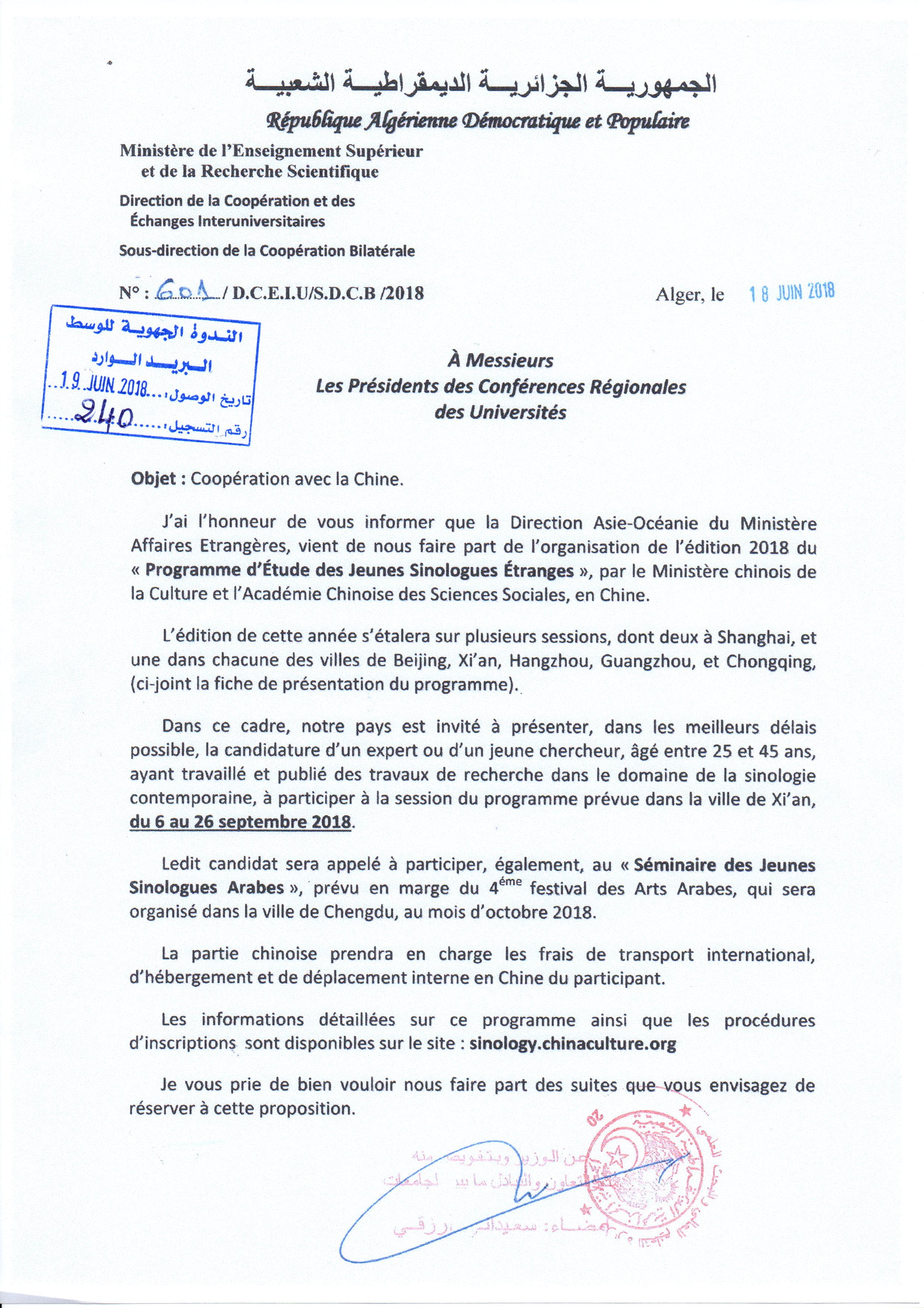 Nous vous informons que la Direction Asie-Océanie du Ministère des Affaires Étrangère organise l’édition 2018 du « Programme d’étude des jeunes sinologues étranges »