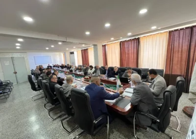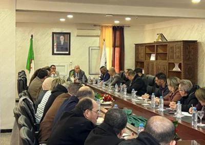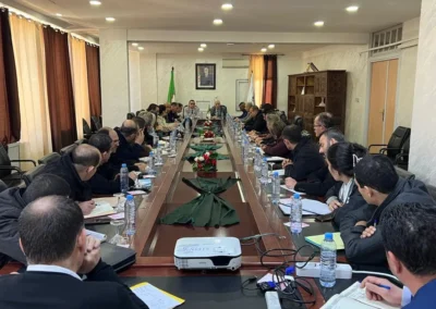 Visite du secrétaire général du ministère de l’enseignement supérieur et de la recherche scientifique, accompagné de monsieur le directeur général de l’office national des œuvres universitaires, de Monsieur le conseiller du Ministre chargé de l’évaluation et l’assurance qualité et d’un chargé de mission au MESRS, une réunion s’est tenue sous la présidence de MR le SG au niveau du rectorat en présence d’un représentant de monsieur le Wali, du Recteur, des DOUs et des directeurs des résidences universitaires.
